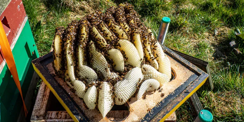 In the meantime, I'm busying myself with some advanced {{10}} DIY for next year's queen rearing, while trying hard to ignore the 3 kg of honey that leaked from a bucket in the honey warming cabinet 😱.